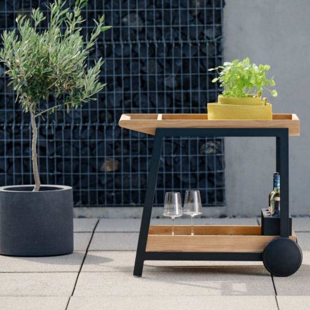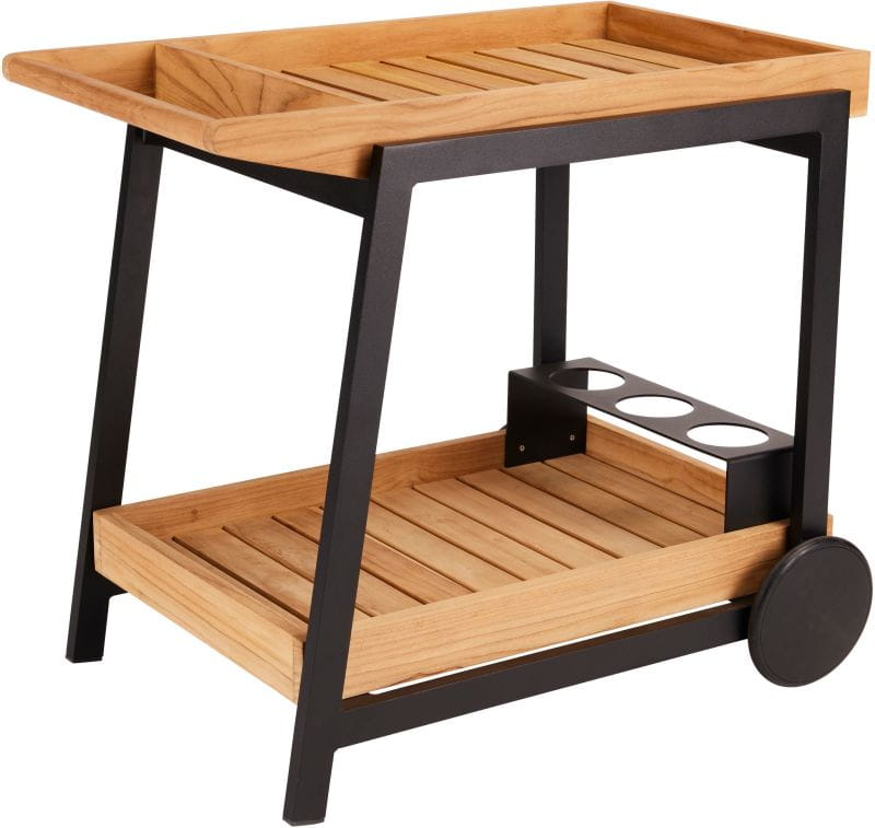 FRIDO to barek ogrodowy wykonany z czarnego matowego aluminium w połączeniu z drewnem teakowym. Doskonały wózek do serwowania.