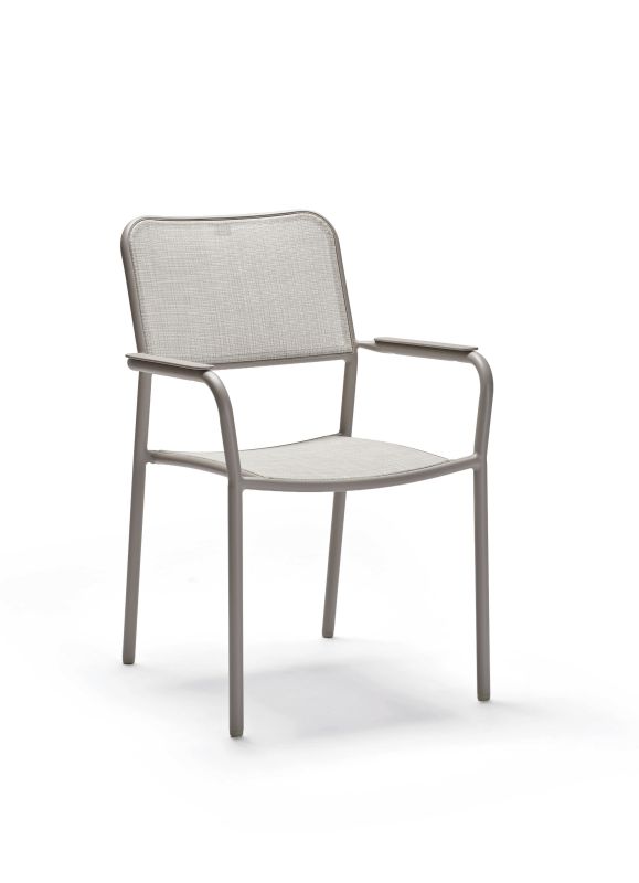 JORIS Doskonałe krzesło do wykorzystania na balkonie, tarasie, w ogrodzie lub oranżerii. Wykonane z aluminium. Rama WARM GREY tkanina Textilen w kolorze ASH LIGHT.