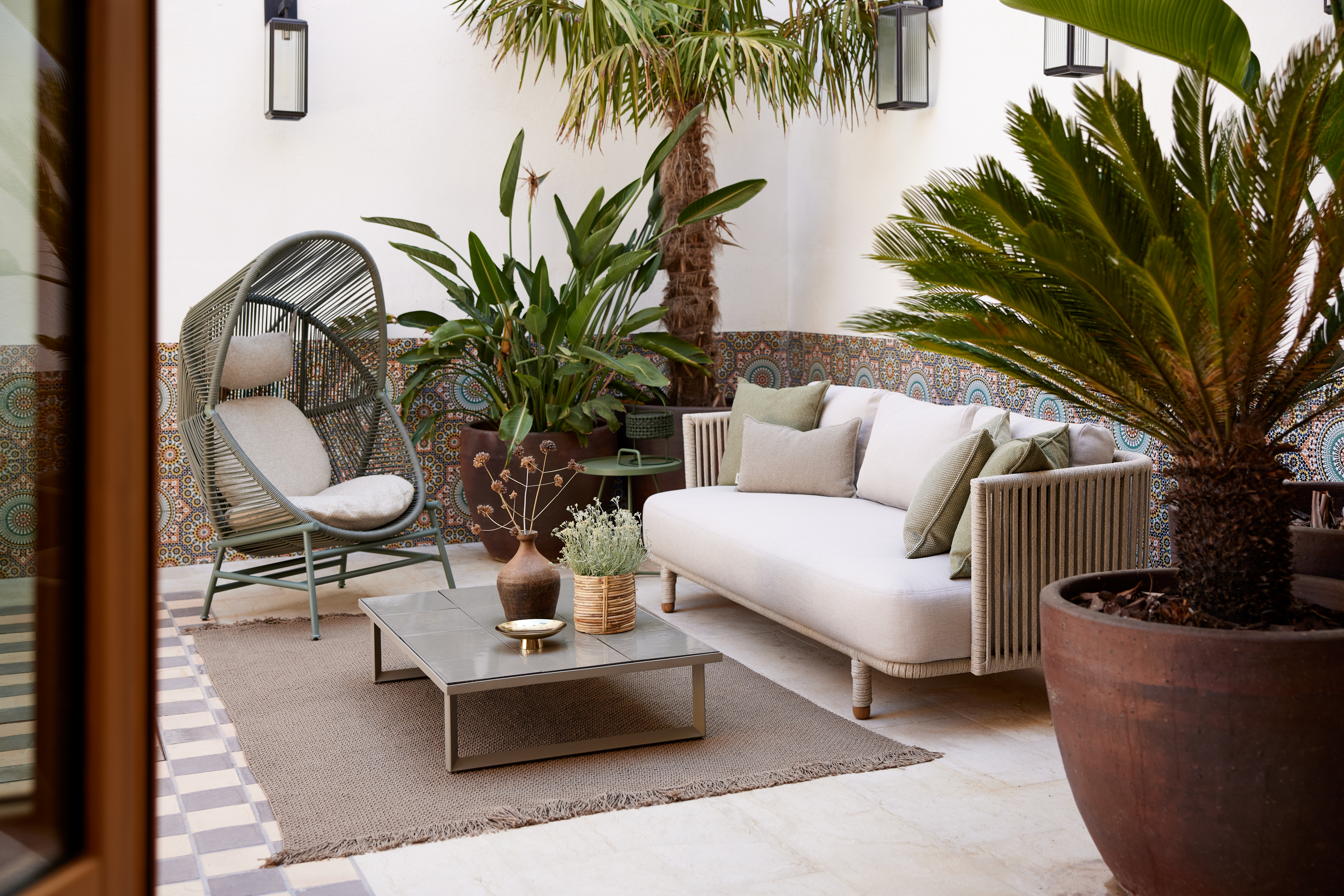 Knit CARPET dywan ogrodowy o wymiarach 240x170 cm. Kolor: Dark Sand. Zmień swój taras w letni salon! Dywany dzianinowe wykonane są z nowatorskiego włókna Cane-line SOFT ROPE®, Połączenie włókien Selected PP z plecionką Cane-line (termoplastycznych włókien). Ten materiał jest odporny na promieniowanie UV jak i deszcz, miły w dotyku, praktyczny i trwały. Są łatwe w czyszczeniu przy użyciu letniej wody i szczotki. Producent dopuszcza niewielkie różnice w wykonaniu poszczególnych egzemplarzy z uwagi na ręczne wykonanie produktu.