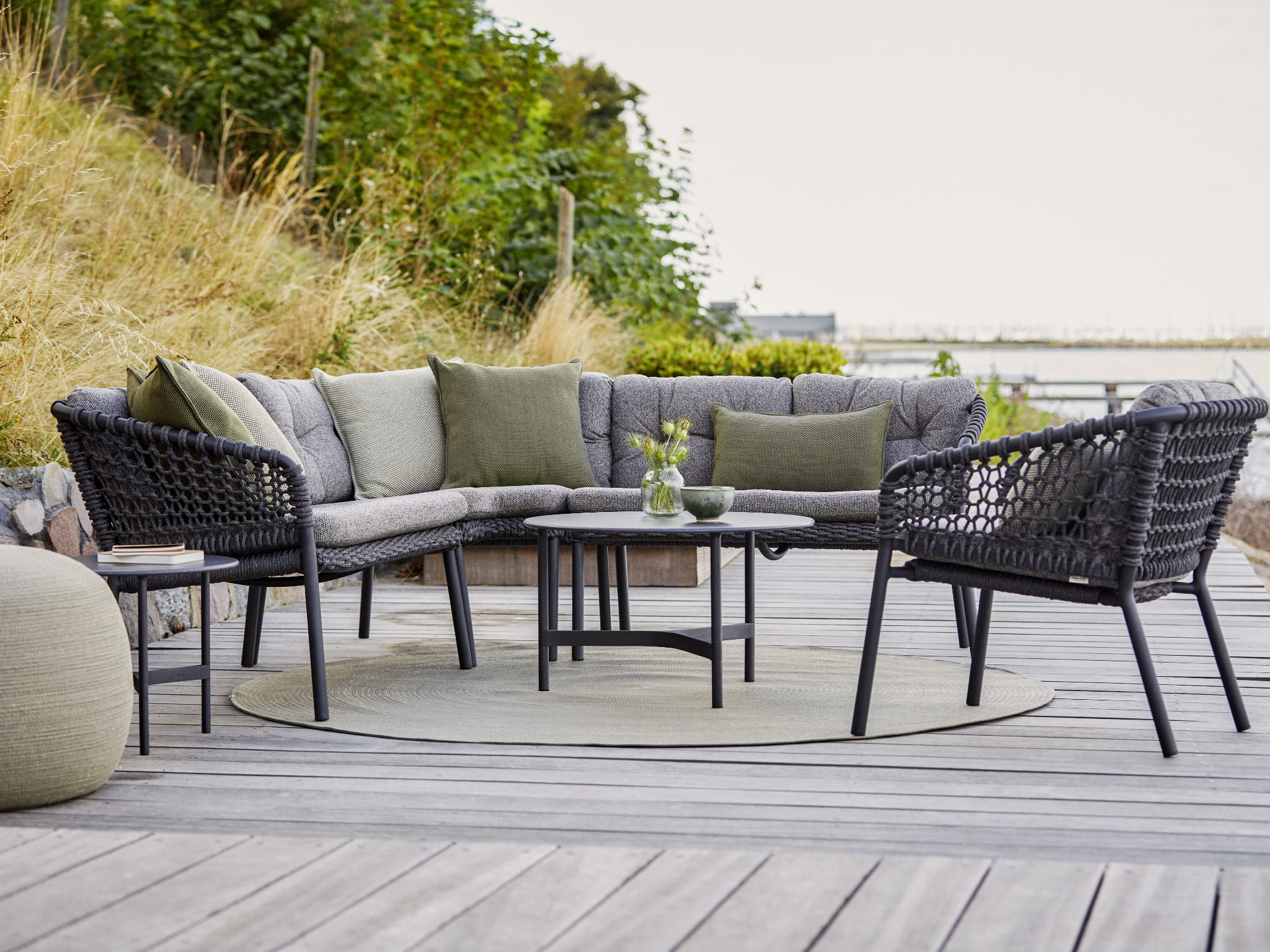 - ROPE® nowatorski materiał do produkcji mebli plenerowych. Połączenie włókien Selected PP z plecionką Cane-line (termoplastycznych włókien) sprawia, że mamy materiał elastyczny o miękkiej, przyjemnej w użytkowaniu powierzchni. Ten materiał jest odporny na promieniowanie UV i deszcz. Meble wykonane ze sznurka ROPE® bardzo szybko wysychają po opadach deszczu lub przypadkowym zamoczeniu. Materiał jest łatwy do czyszczenia przy użyciu ogólnie dostępnych środków czystości.