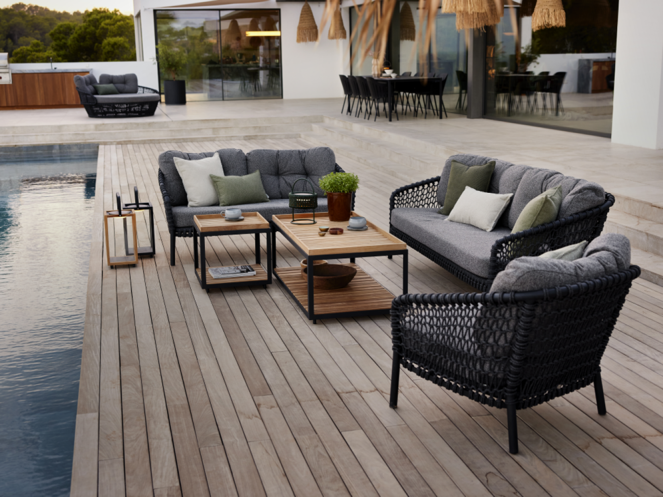 ROPE® nowatorski materiał do produkcji mebli plenerowych. Połączenie włókien Selected PP z plecionką Cane-line (termoplastycznych włókien) sprawia, że mamy materiał elastyczny o miękkiej, przyjemnej w użytkowaniu powierzchni. Ten materiał jest odporny na promieniowanie UV i deszcz. Meble wykonane ze sznurka ROPE® bardzo szybko wysychają po opadach deszczu lub przypadkowym zamoczeniu. Materiał jest łatwy do czyszczenia przy użyciu ogólnie dostępnych środków czystości.
