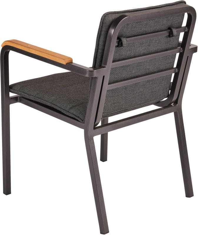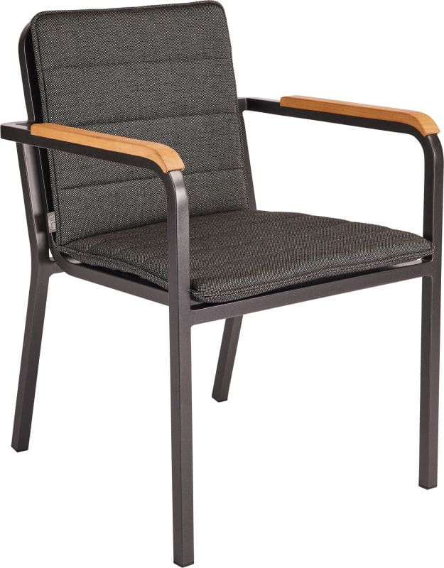 PEPE krzesło ogrodowe. Krzesła mogą być wykorzystywane na zewnątrz bez obawy o ich uszkodzenie. Krzesła zostały wykonane z ramy aluminiowej w kolorze anthracite i poduchy silk black 100% polyacrylic.  . Krzesła można sztaplować.