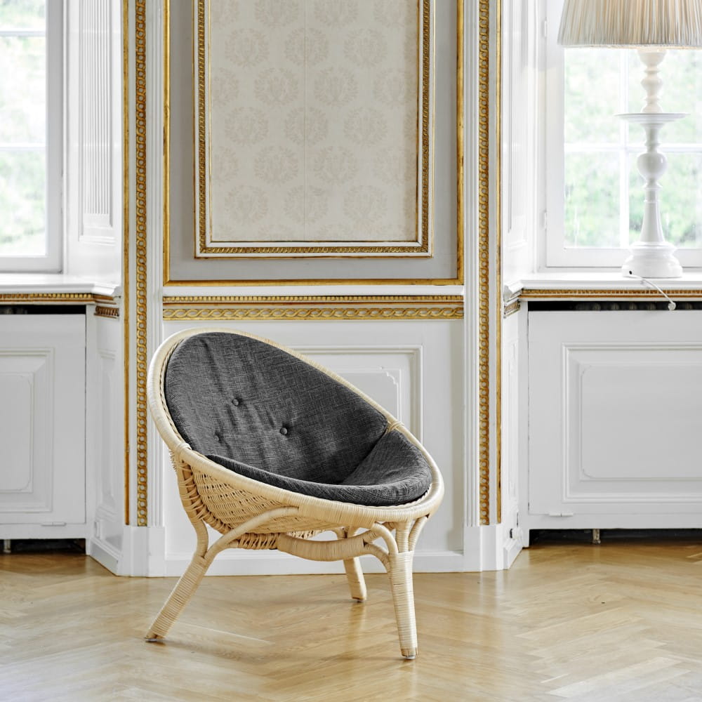 Bardzo wygodny fotel wykonany z doskonałej jakości rattanu (Manau) i taśmy rattanowej (Gold Dega Core). Fotel dostępny w naturalnym kolorze ratanu z poduszką w kolorze Dark Grey.