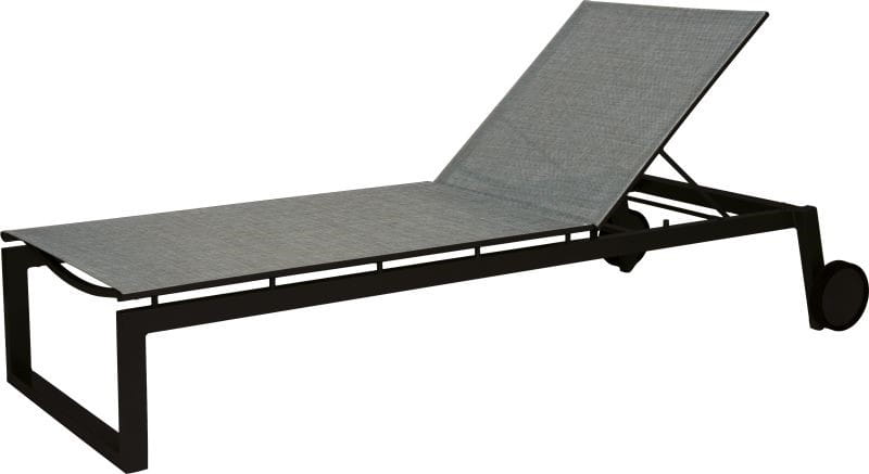 ROBIN leżak ogrodowy na dużych kółkach. Bardzo wygodny leżak z pięciostopniową regulacją wysokości oparcia. Rama aluminiowa w kolorze black matt. Wypełnienie siedziska i oparcia Textilen w kolorze linen grey.