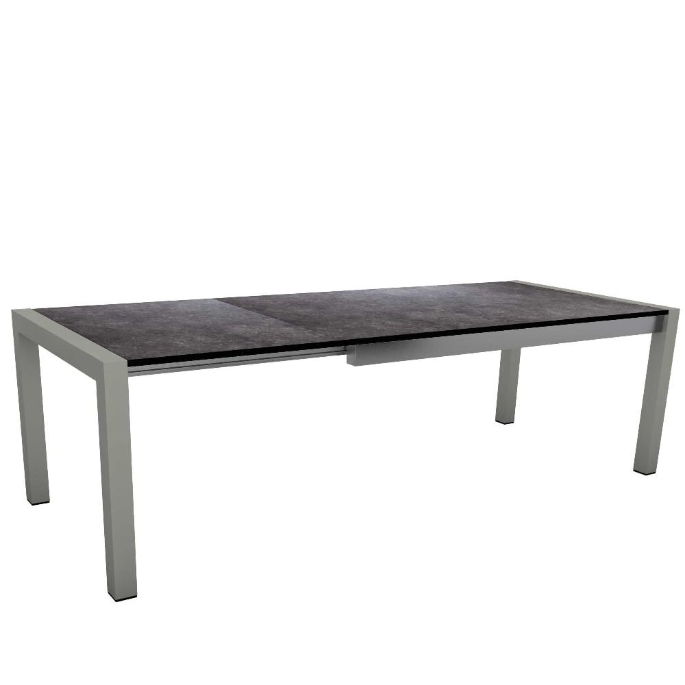 Ekskluzywne stoły z blatami (HPL) Silverstar 2.0 w różnych kolorach (10 rodzajów) na aluminiowej podstawie w kolorze GRAFIT. Stół z dwoma oddzielnie wkładanymi płytami przedłużającymi stół do 214 lub 254 cm.