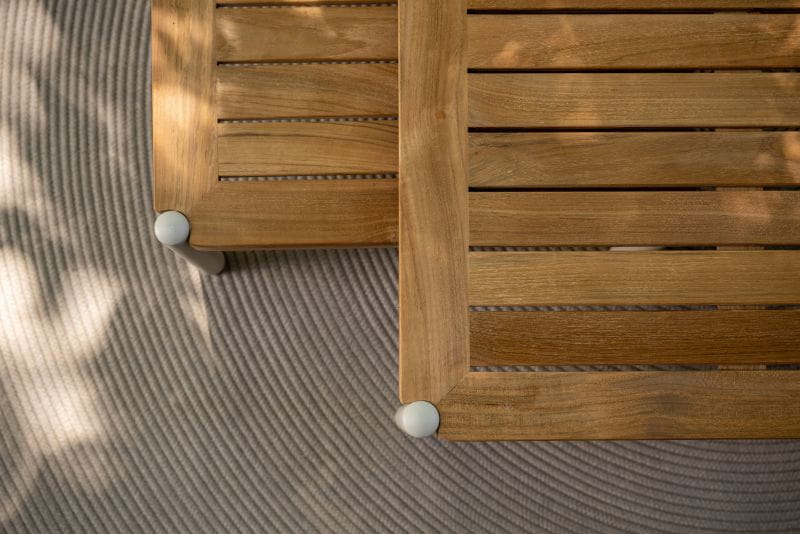 Teak jest drewnem idealnym do produkcji mebli ogrodowych. Wysoka zawartość naturalnych olejków powoduje, że jest odporny na zmianę warunków atmosferycznych. Z biegiem czasu powstaje na nim naturalna patyna, a deszcz, słońce, zmiana temperatur powodują powstawanie rys w drewnie –  charakterystycznych dla każdego surowca naturalnego. Jest to normalny proces, który nie umniejsza jakości drewna i w żadnym przypadku nie skraca czasu użytkowania. Teak jest łatwy w pielęgnacji – najlepiej odpowiednimi do tego środkami.